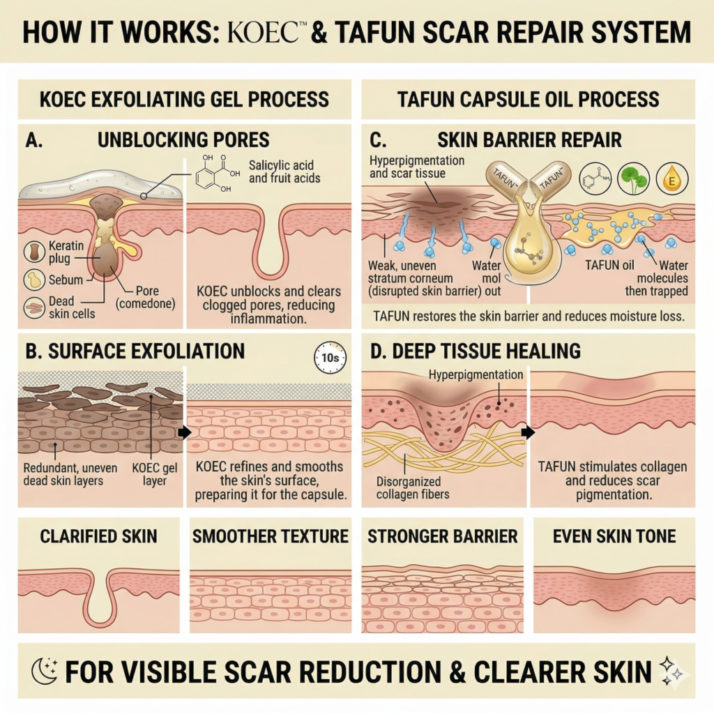 Once purged, the Niacinamide Essence Capsule penetrates deep to regulate oil, reduce inflammation, and fade dark spots. By combining deep exfoliation with barrier repair, this 2-in-1 system clears active acne and prevents future flare-ups, delivering a soft, spot-free complexion in less than 30 days.