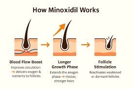 Minoxidil works by widening blood vessels in the scalp, improving blood flow and nutrient delivery to hair follicles. This enhanced circulation stimulates the hair growth cycle, particularly by prolonging the anagen (growth) phase. When applied twice daily—just 1ml each time—it supports visible hair regrowth within 2–4 months for most users.